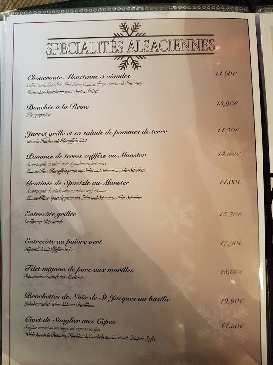 Guests rave about the restaurant's signature dish, "La Riquewihrienne", featuring the exquisite flavors of Green Sauerkraut. The pork knuckle paired with decadent potato gratin showcases fall-off-the-bone tenderness, while the succulent bone-in chicken breast complemented by a rich gravy and pan-fried spaetzle highlights the kitchen's craftsmanship.